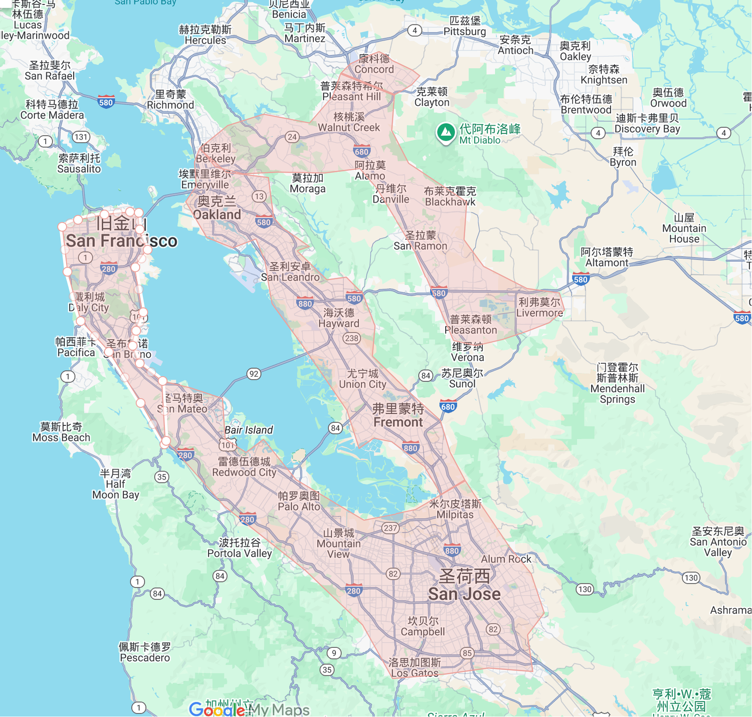 这是我们目前的派送区域, 如果有比较难到达的目的地请下单后, 标注提醒信息 (例如门禁密码), 如果有疑问请联系Wechat: HGS-L123